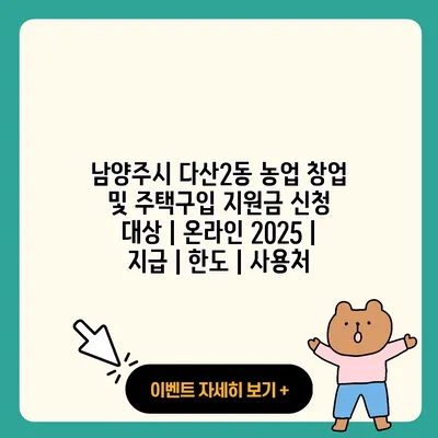 남양주시 다산2동 농업 창업 및 주택구입 지원금 완벽 가이드