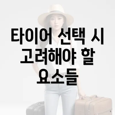 타이어를 선택할 때는 여러 가지 요소를 고려해야 해요. 다음은 그중 주요한 요소들이에요: