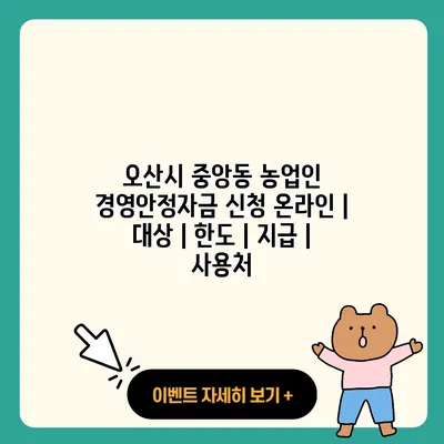 A2: 오산시 중앙동에서 경영안정자금을 신청할 수 있는 대상은 농업경영체 등록이 되어 있는 농업인과 해당 지역에서 농업을 경영하며 일정 기준 이상의 농업 실적을 보유한 자입니다.
